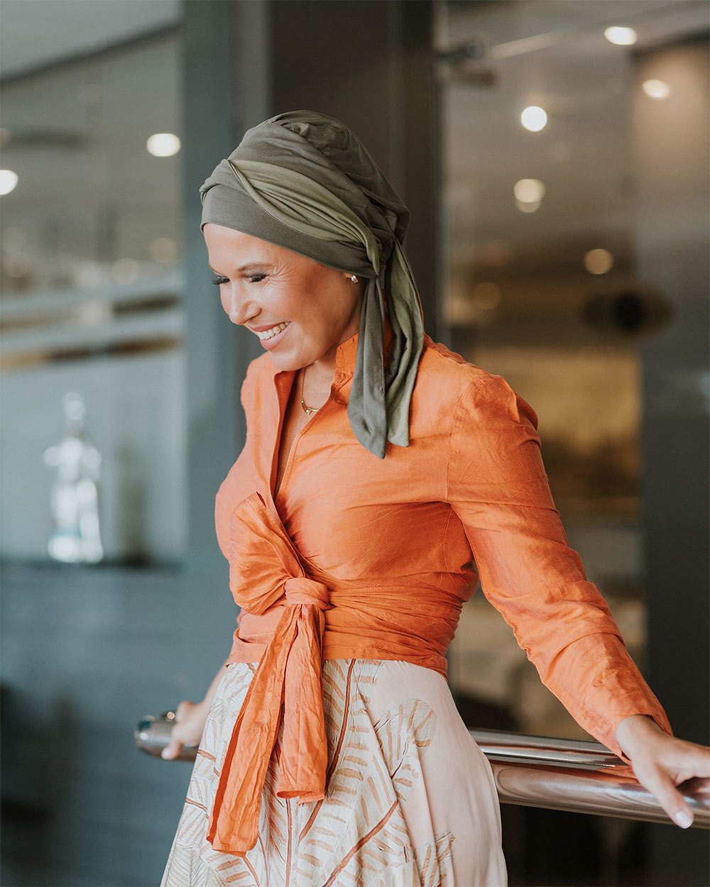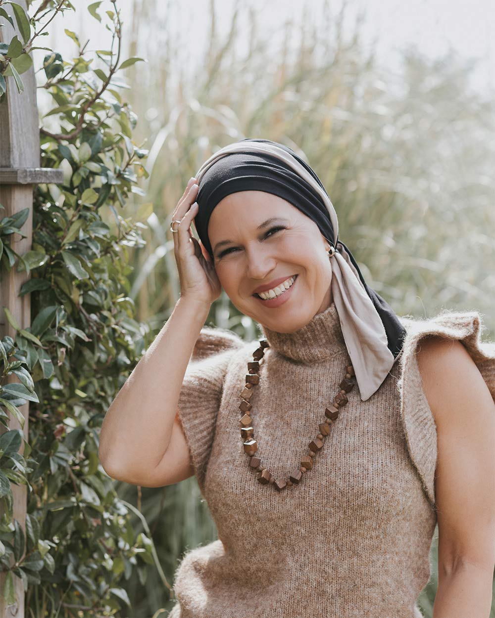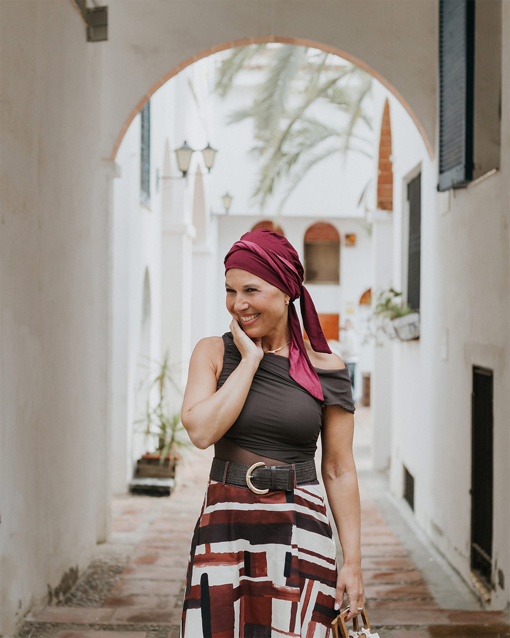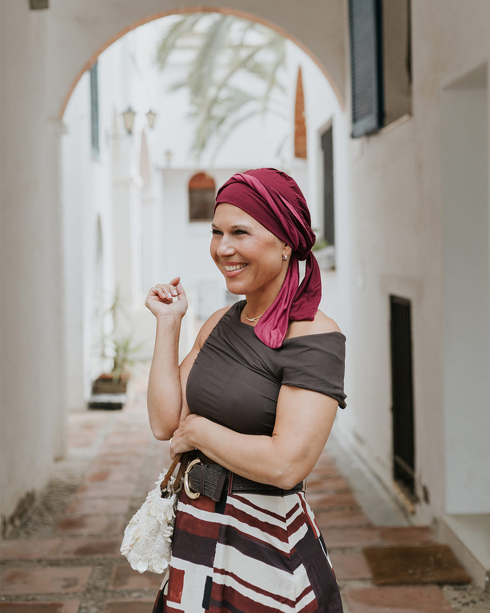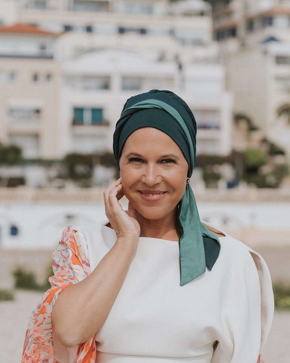 Este pañuelo oncológico bicolor te permite jugar con diferentes combinaciones y volúmenes, creando estilos únicos según la ocasión. Gracias a sus dos tonalidades, puedes transformar tu look en segundos y experimentar con infinitas posibilidades.