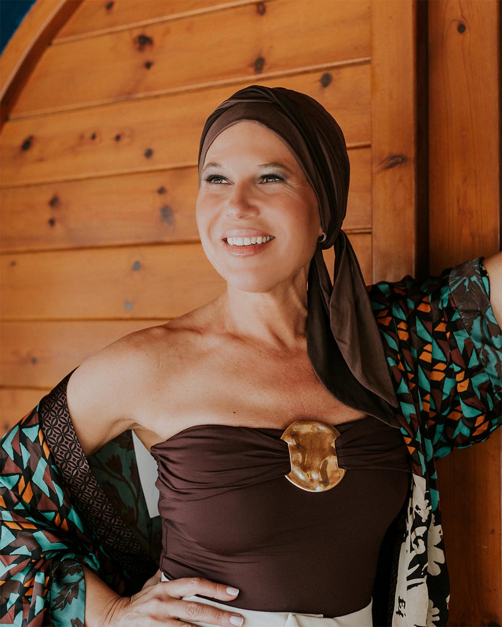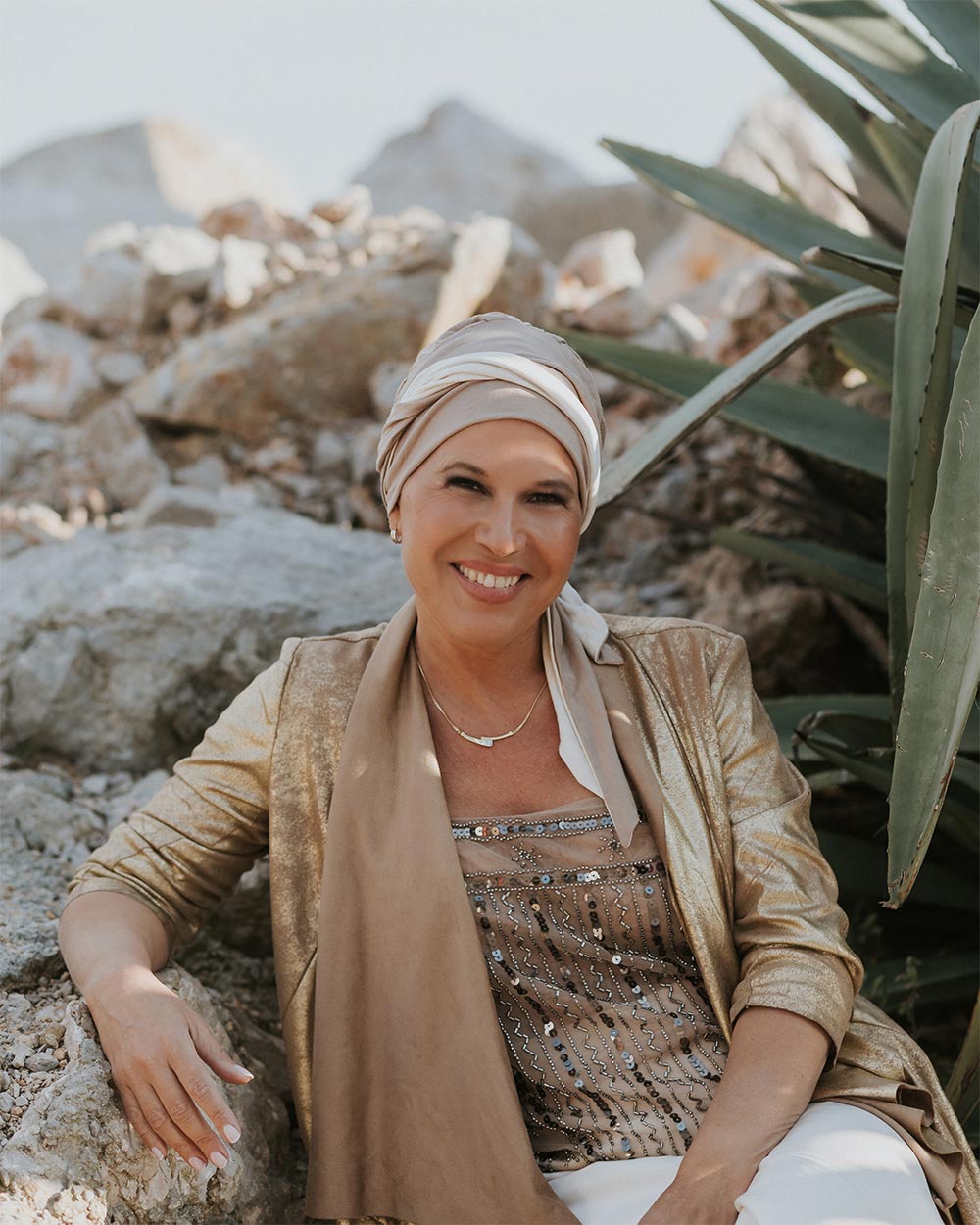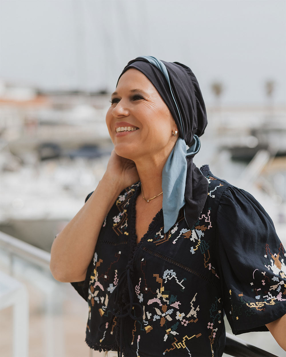 Félice Doris BambooSoft es un pañuelo oncológico tipo turbante con lazos largos en dos tonalidades contrastantes, diseñado para ofrecerte estilo, versatilidad y un ajuste totalmente personalizado. Gracias a sus lazos, puedes regularlo fácilmente para adaptarlo a tu cabeza, logrando una sujeción cómoda y segura durante todo el día.
