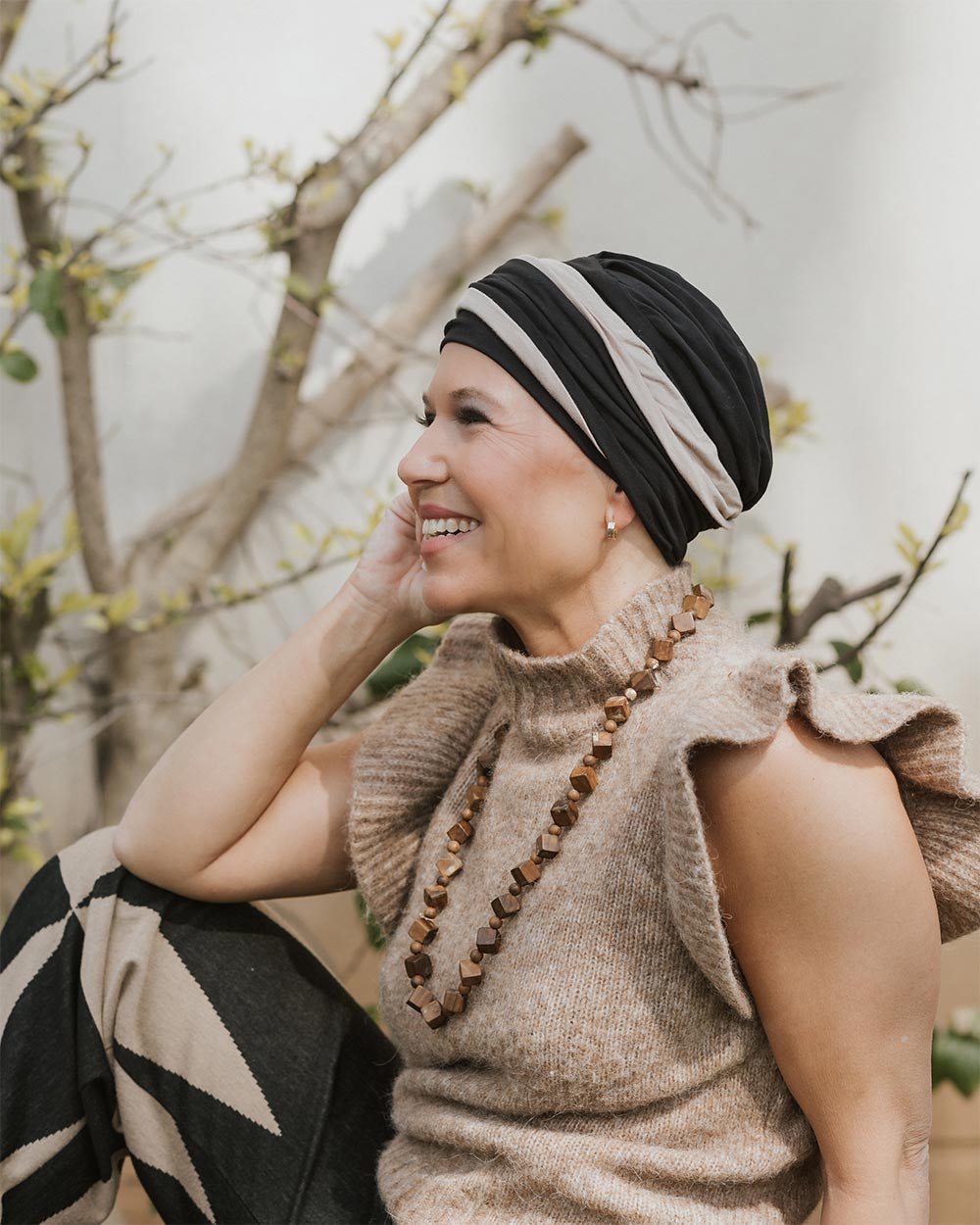 Félice Lucia BambooSoft es un turbante oncológico bicolor que aporta un toque moderno y fácil de combinar a cualquier look. Su diseño sencillo hace que sea muy práctico de poner y perfecto para el día a día.