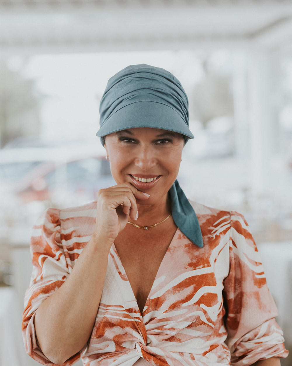 Félice Lucia Waves es un pañuelo oncológico tipo turbante pensado para acompañarte durante todo el año, ofreciendo confort y estilo en cualquier estación. Su diseño versátil lo convierte en una opción perfecta tanto para el día a día como para ocasiones especiales.